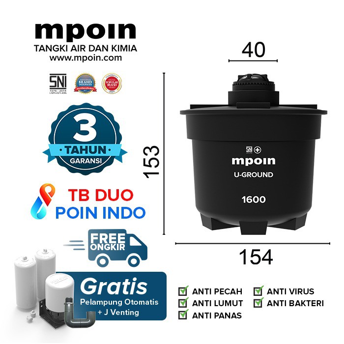 Bagian dalamnya dilengkapi dengan lapisan anti lumut sehingga menjaga kualitas air yang disimpan.